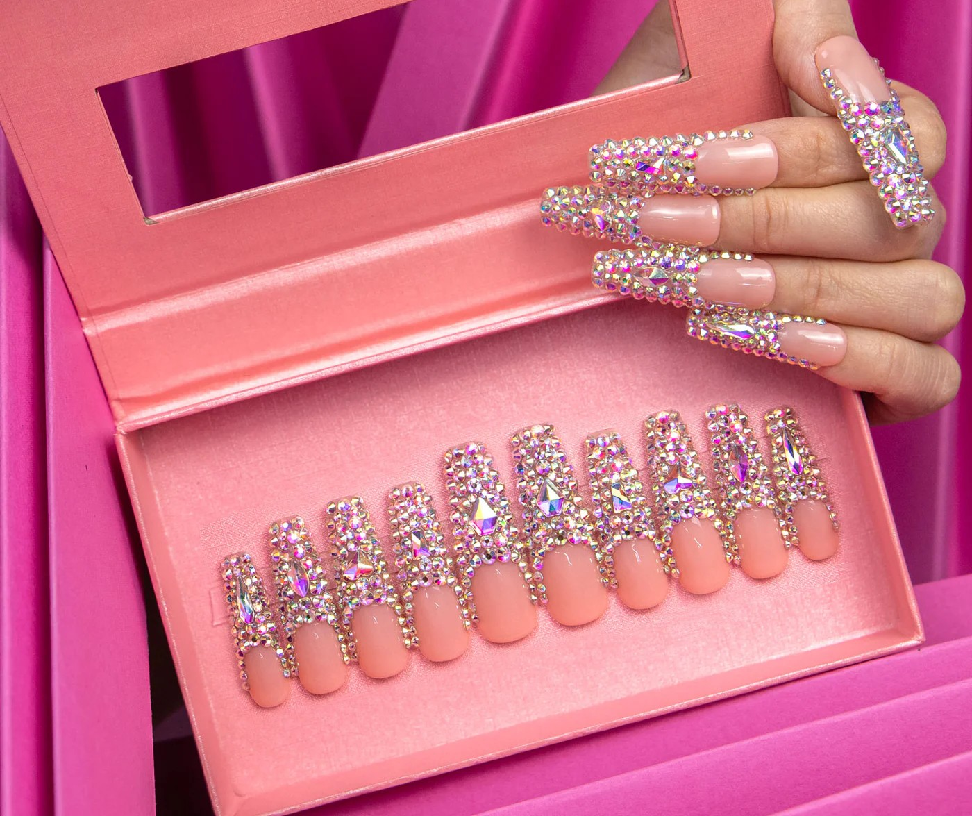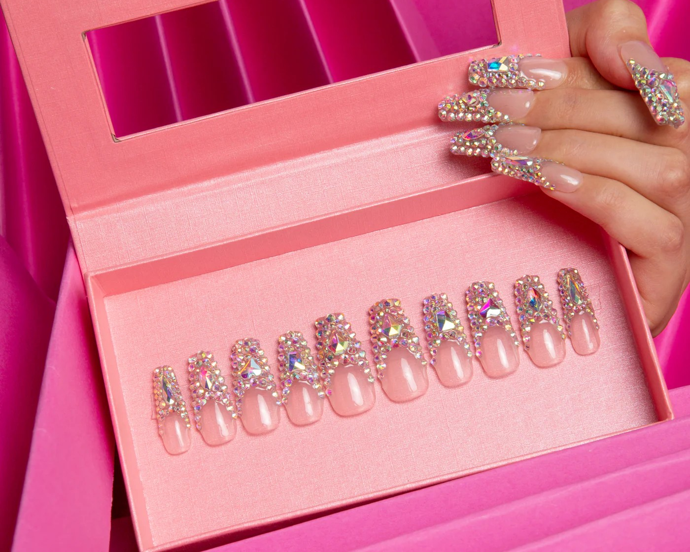 The "Angel's Tear" press-on nails feature a divine French tip design, accented with sparkling rhinestones that shimmer like angelic tears. Perfect for galas, celestial parties, or any occasion where you want to shine with grace, these nails elevate your style and leave a trail of enchanting magic wherever you go.