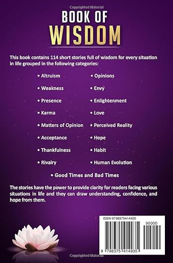 Discover wisdom for every aspect of life in this compelling collection of 114 Short Stories, thoughtfully organized into categories such as Altruism, Love, Hope, and Enlightenment. Spanning 220 pages, these stories provide insights that can help you navigate life's challenges with greater clarity, understanding, and confidence.