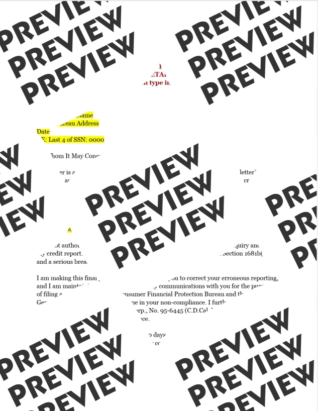 This follow-up letter helps you challenge any credit inquiries you did not authorize. It is designed to request proper verification or removal of those inquiries and to push for a response from the credit bureaus or creditors. By using this letter, you can continue the process of correcting your credit report, protecting your credit score, and making sure your credit history accurately reflects your financial activity.