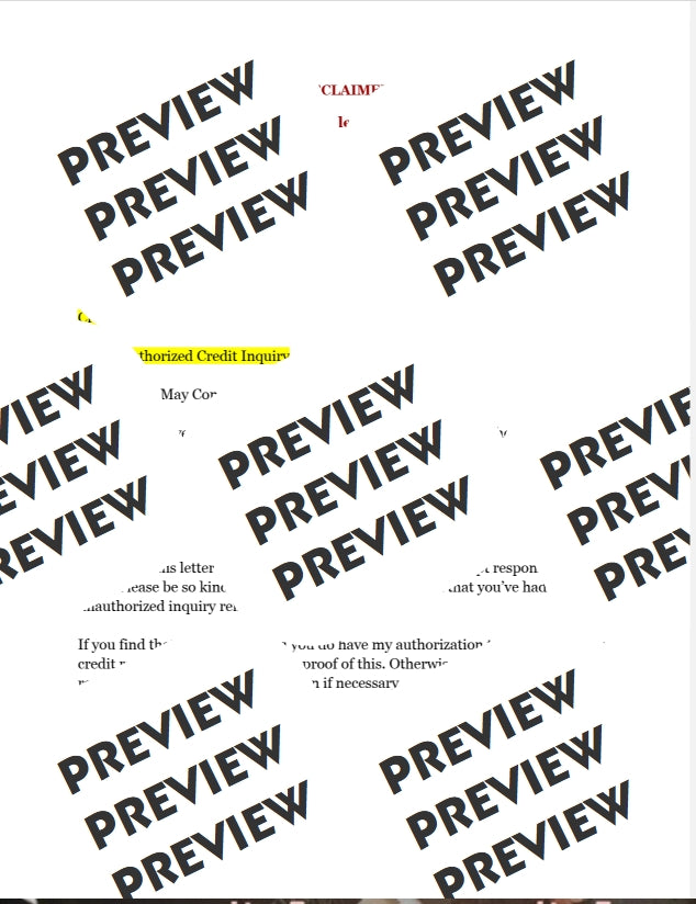 This letter is designed to challenge hard inquiries that appear on your credit report, which you believe were made without your authorization. Under the Fair Credit Reporting Act (FCRA), only authorized inquiries are allowed to show up on your credit report.