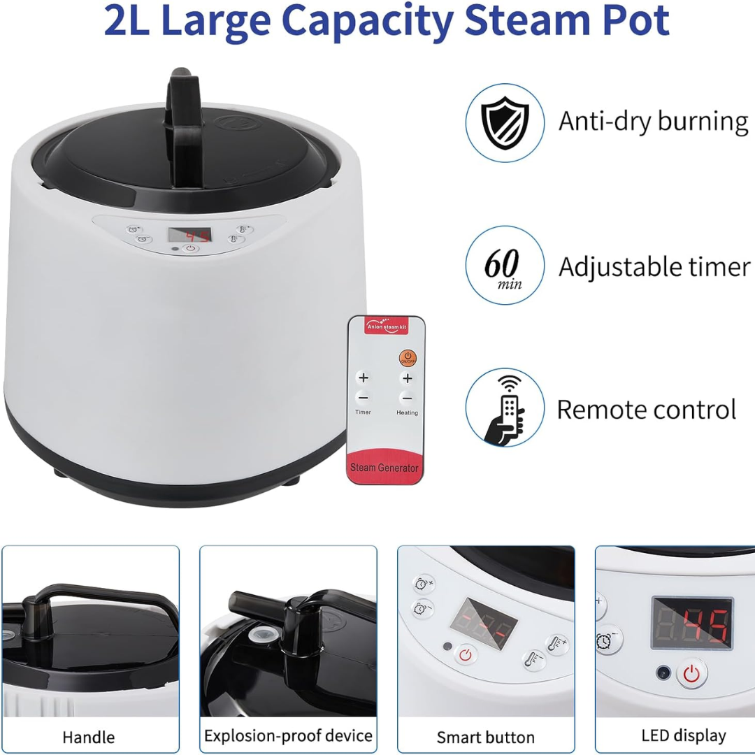 2L Steam Generator: Equipped with 2-liter steam generator for quick and ample steam production
